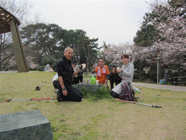 ポールウォーキングは体の前で突きます。
