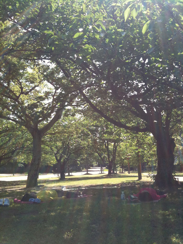舞鶴公園にてマットを広げ,ヨガスタート。