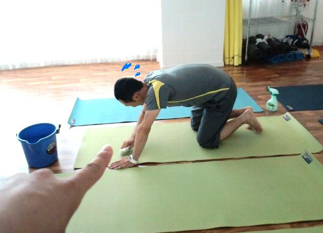 先日はヨッシーとレッスンの空き時間にヨガマットの掃除をしました。