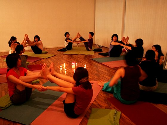 音楽に合わせて流れるように動いてゆくヨガ。