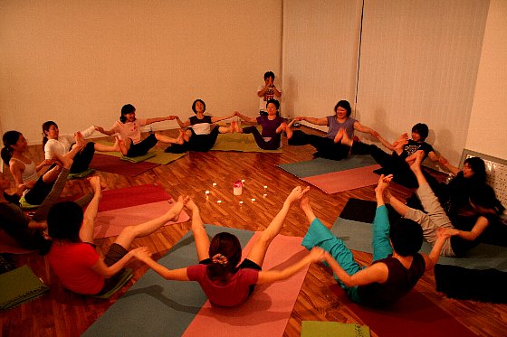 ペアになって座位のアサナをとりました
