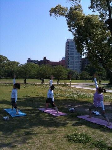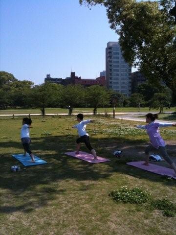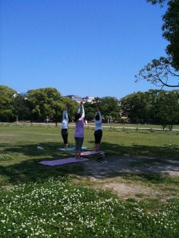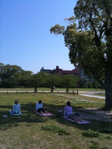 舞鶴公園にてマットを広げ,ヨガスタート。